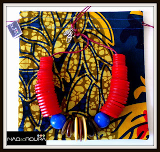 Colares Étnicos, de botões transparentes, com saco em Áfrican-Print.